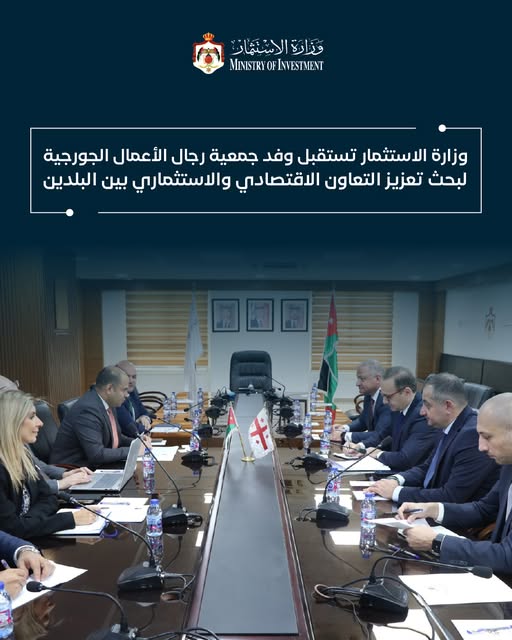 Amman – The Ministry of Investment received a delegation from the Georgian Business Association, headed by Executive Director Levan Pipkhvadze, ....