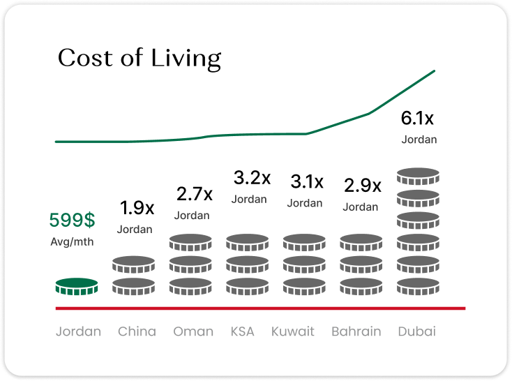 Pegged to the US$ since 1995, the JOD’s stability is due to prudent fiscal policies & a diversified economy
